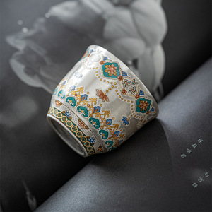 999鎏银谷伊万花高档家用茶杯新中式品茗杯个人专用主人杯防烫