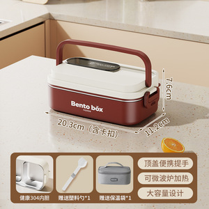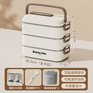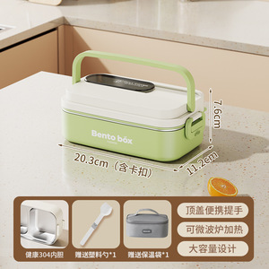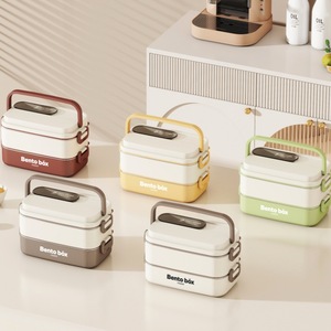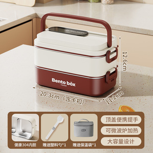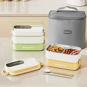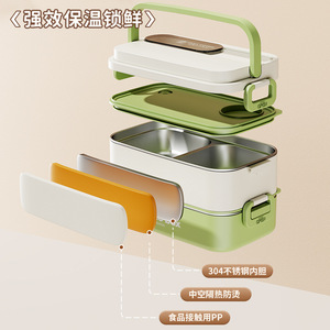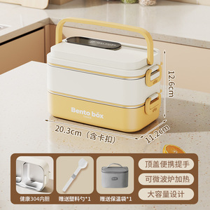 日式304不锈钢保温盒双层分格便单盒长方形学生便携塑料保温饭盒