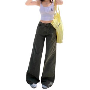 美式复古工装裤女秋季2025新款军绿色小个子休闲宽松阔腿牛仔裤潮