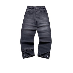 跨境美式复古水洗做旧牛仔裤男秋冬街头黑灰色刺绣直筒长裤宽松潮