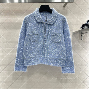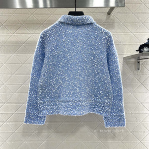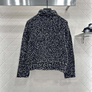 颗粒绒花边翻领针织衫 名媛小香风显瘦百搭撞色长袖开衫 CW82030