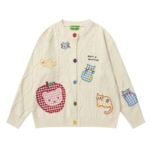 Fudge Pink 25冬季New甜美少女趣味图案宽松毛衣开衫