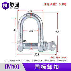 国标镀锌卸扣碳钢起重卸扣U型环卡扣吊装索具船用挂钩厂家直销