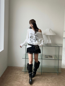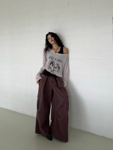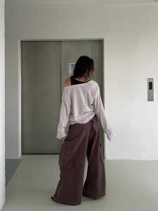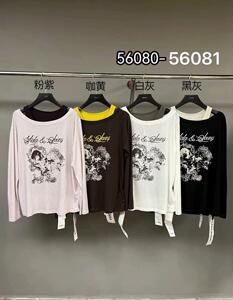 2025秋季新款真两件套女式T恤字母印花长袖T恤+背心56080-56081