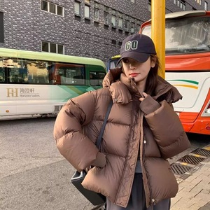 咖色短款羽绒服女2025冬季新款小个子宽松云朵泡芙加厚白鸭绒外套