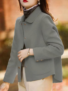 2025跨境欧美新款独立站女士短款双面呢外套翻领长袖金属纽扣外套