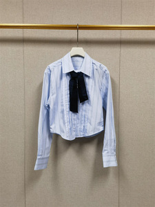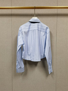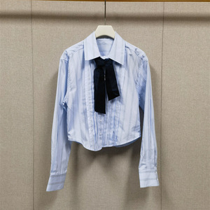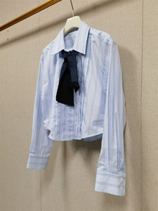 法式小众25秋冬学院风撞色系带条纹长袖短款衬衫上衣女