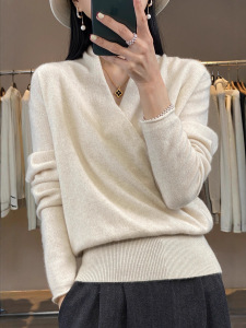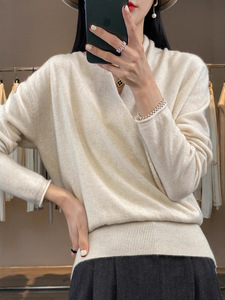 2025新款全羊毛衫女V领针织打底衫交叉领上衣秋冬爆款羊绒毛衣