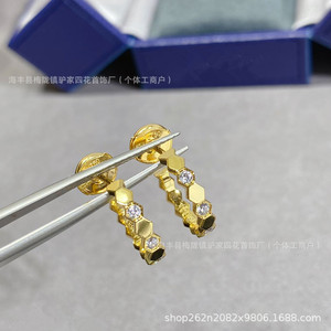 蜂巢耳环女间钻时尚高端玫瑰金蜂巢耳钉轻奢气质百搭网红爆款礼物