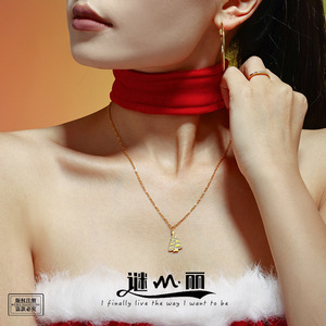 谜丽圣诞树镶锆石锁骨项链不锈钢PVD镀真金浪漫礼物惊喜送女友