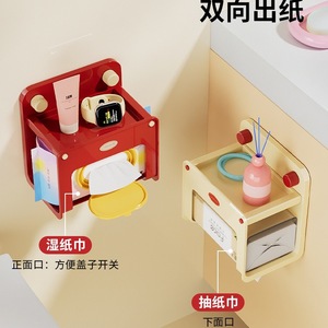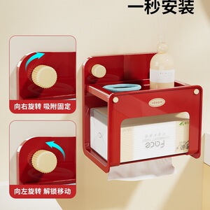 卫生间吸盘纸巾盒免打孔卷纸架厕所洗脸巾置物架多巴胺厕纸盒壁挂
