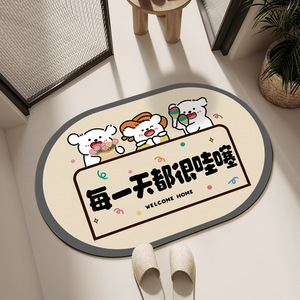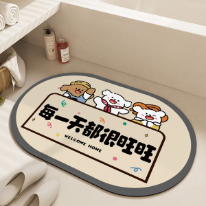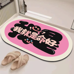 趣味卡通文字浴室吸水地垫卫生间浴室门口脚垫厕所防滑垫入户门垫