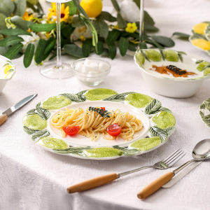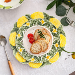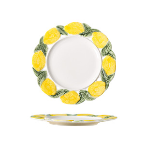 创意手绘浮雕陶瓷盘可爱柠檬水果盘碗餐厅家用西餐菜盘釉下彩餐具