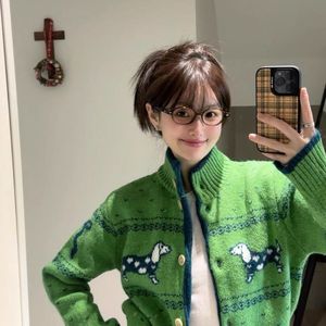 圣诞绿色毛衣女2025春秋季费尔岛复古氛围感穿搭上衣针织开衫外套