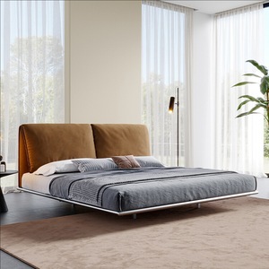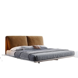 意式极简布艺床小象耳朵不锈钢架床主卧高端大气软包双人婚床1.8m