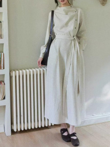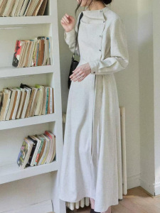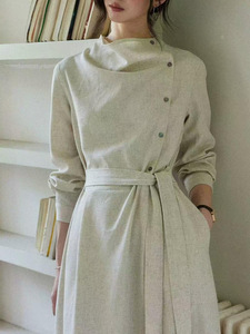 贰羊设计【暮云归】高级感长袖斜门襟连衣裙女秋知识分子风收腰裙