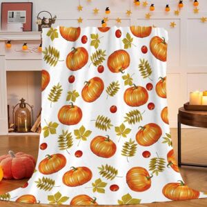 秋季主题毯子南瓜丰收图案法兰绒毛毯适合万圣节礼物床沙发装饰