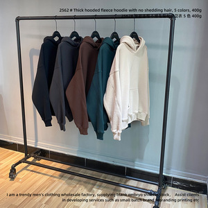 冬季重磅400g无logo加绒加厚款摇粒绒纯色空白鼠袋连帽男士卫衣