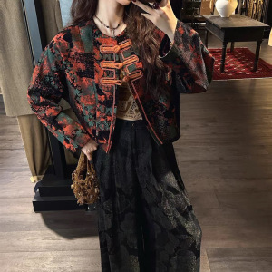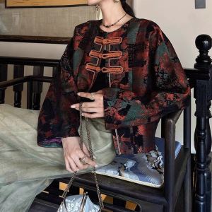 【花清月】雪尼尔色织提花盘扣外套2025秋季新款中国风新中式上衣