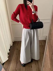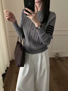 设计感软糯三杠条纹学院风圆领麻花小狗刺绣减龄针织开衫外套女