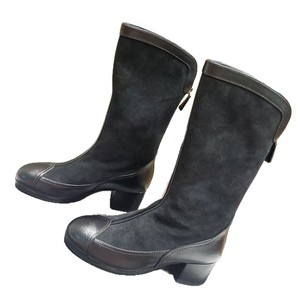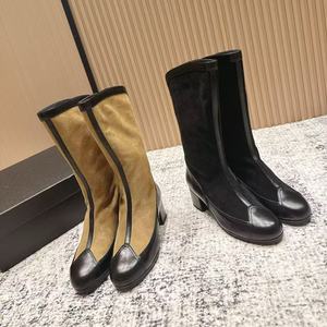 小香风时尚帅气骑士靴2025新款真皮法式粗跟靴拼接绒面复古中筒靴