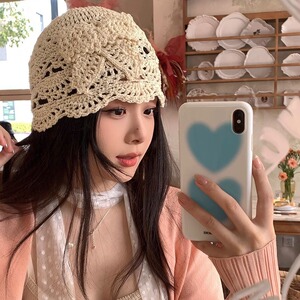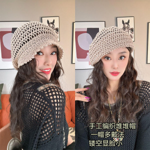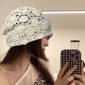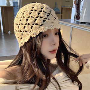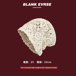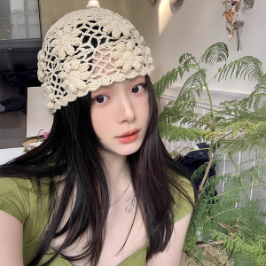 波西米亚手工编织镂空包头帽女士钩花民族风旅行拍照套头针织帽子