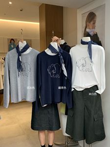 苏奈 韩系小熊印花慵懒风长袖T恤女秋气质圆领打底上衣fromanna