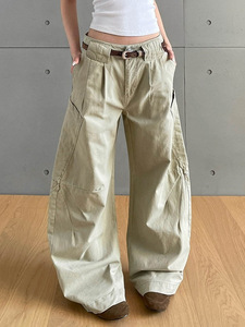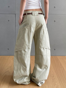美式复古压褶立体剪裁休闲工装裤男女宽松直筒阔腿拖地弯刀牛仔裤