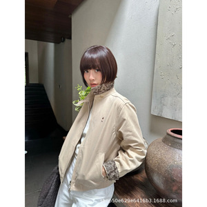 RL拉夫【老干部夹克】Polo小马牛仔夹克青花撞色翻领拉链外套女