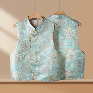 新中式国风马甲女春秋休闲新款洋气唐装背心上衣妈妈坎肩提花马夹