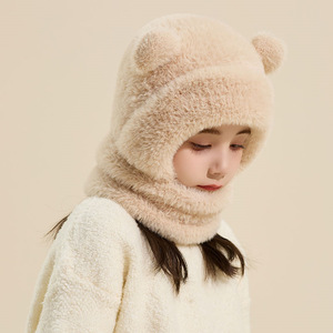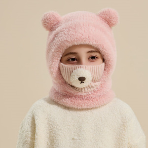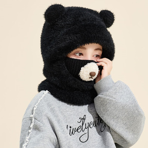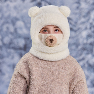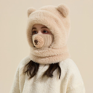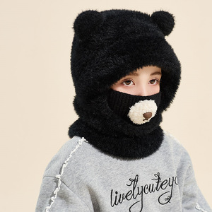熊鼻连体保暖帽子儿童冬季护耳围脖一体帽户外男女宝宝滑雪雷锋帽