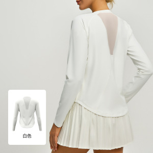 防紫外线宽松运动服后背网纱跑步长袖修身透气纯色高弹瑜伽上衣女