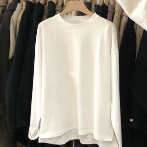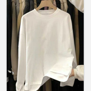开叉加厚磨毛打底衫2025秋冬新款百搭宽松白色长袖内搭T恤女