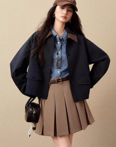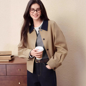 巴恩风撞色翻领风衣25秋新款小个子气质外套女7G8160261