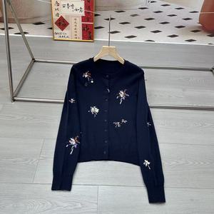 即墨厂家09020625女装2025秋季新款圆领ADF嵌花手工钉珠毛衣开