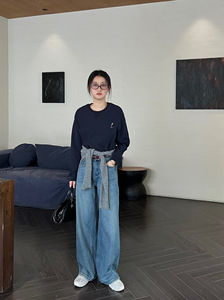 [简裁]T-PLATFORM 复古水洗阔腿牛仔裤秋冬加绒拖地直筒裤73309