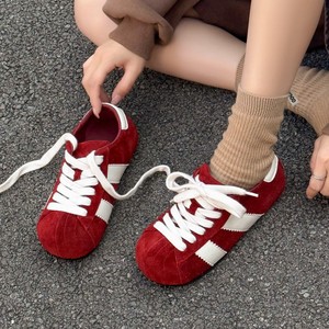 2025年秋季新款小众复古拼色德训鞋系带圆头板鞋平底阿甘鞋泡泡鞋