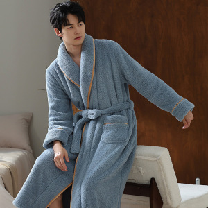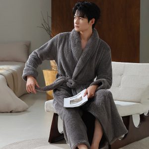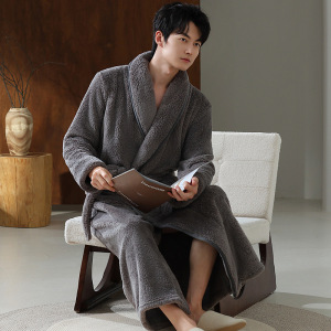睡袍男士大码秋冬长款珊瑚绒加厚加绒慵懒风休闲柔软保暖浴袍2025