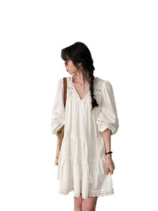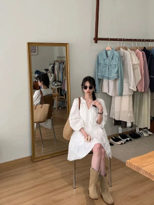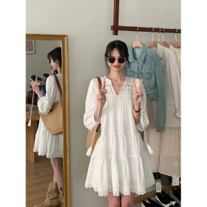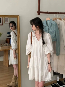 法式白色长袖连衣裙子女早秋2025新款小个子新款显瘦度假穿搭短裙