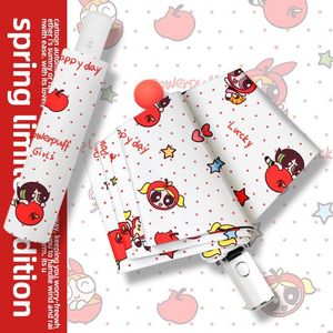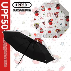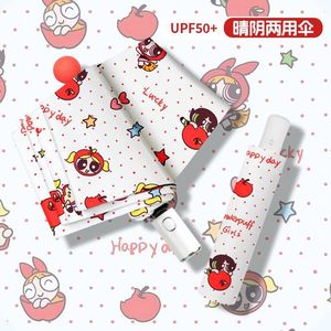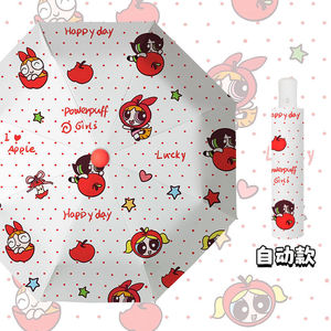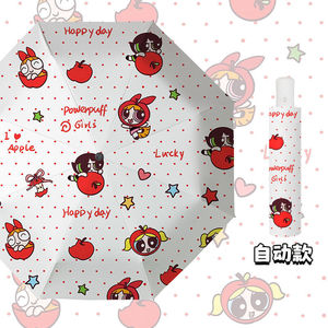 卡通苹果小女警雨伞三折八骨折叠自动伞防晒黑胶加厚遮阳伞便捷