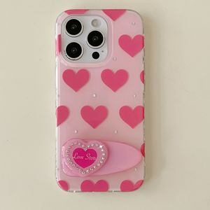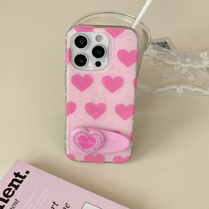 简约满屏爱心点钻爱心发卡支架适用iPhone16苹果15ProMax手机壳14