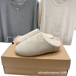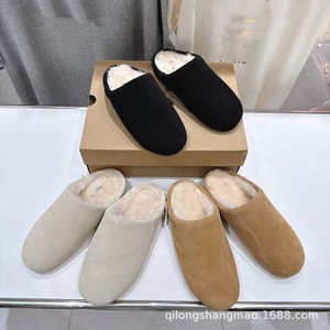 高端2025冬季圆头羊皮毛一体平底一脚蹬懒人休闲包头半拖毛毛拖鞋
