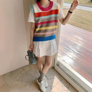 韩系针织马甲女春季新款彩色多巴胺拼色小众百搭叠穿软糯毛衣背心