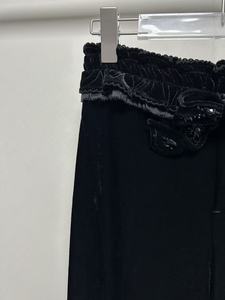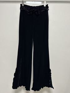 2025秋冬新款黑色百搭木耳边刺绣压褶蝴蝶结丝绒显瘦长裤
