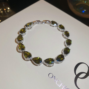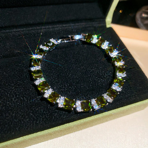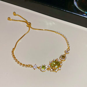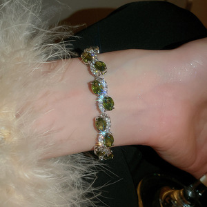 绿色锆石圆形手链轻奢高级感手环女简约时尚精致气质手饰小众设计