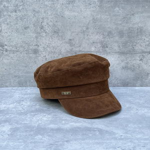 入秋棕绿时髦穿搭麂皮绒平顶报童帽女秋冬时尚八角帽百搭画家帽子