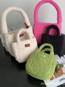 25年UGG秋冬季可爱羊羔毛手提包毛茸茸水桶包百搭单肩斜跨毛毛包