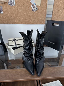 2025秋冬新款尖头坡跟裤管靴内增高气质显瘦法式时尚中筒靴女靴子