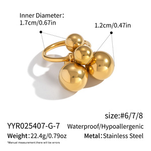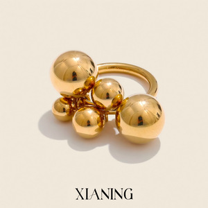 夏凌时尚热销钢珠叠戴风戒指不锈钢电镀18K金女士个性魅力戒指
