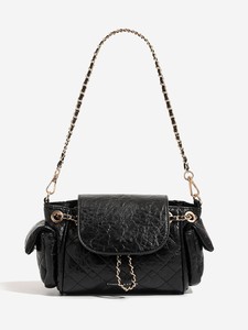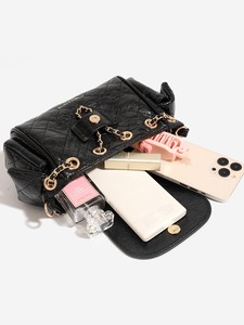 机车风油蜡皮链条单肩腋下包女2025新款通勤高级菱格迷你双肩背包